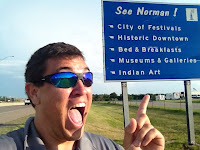 Ohhhh Oklahoma. OHHHHHH Oklahoma. Ever wonder whats in Oklahoma? Well Normans in Oklahoma. That's right, I am in Oklahoma. Well to get technical, I WAS in Oklahoma. But there is a city called Norman, OK and its right outside Oklahoma City where I was staying. Apparently its known for festivals, Bed and Breakfasts and Indian Art. But I'll just take the big sign with my name on it.